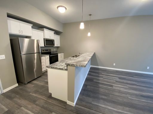 The Pointe @ Merchant Square welcomes you to a modern feel home with the ease of maintenance free apartment living. We offer 6 month, 9 month, 12 month, 15 month and 18 month lease terms to best fit your housing needs. The Pointe @ Merchant Square consists of 1 and 2 bedroom open floorplan units with a spacious kitchen including stainless steel appliances and large living area with hardwood style flooring. Take advantage of the fitness center to help unwind after a long day at work. Have a family gathering coming up? We have just the spot in our furnished Social Space with a large flat screen TV and fireplace. Garage stalls and storage units are available, as well as off street parking in the well-lit parking lot. The building is equipped with controlled access and security camera system. We are conveniently located off Interstate 35, near restaurants, shopping, hotels and multiple employers. Enjoy sitting outside on your very own balcony or grill your favorite meal on the relaxing community patio. Let your dog meet other four-legged friends at our designated pet run.